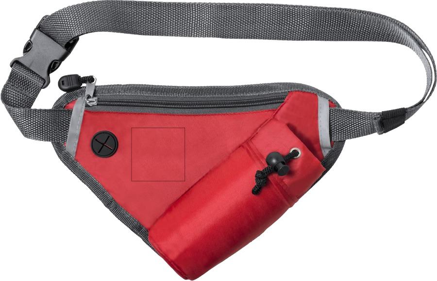 Reflektierende Gürteltasche mit gepolsterter Rückseite und Trinkflaschen-Tasche. Material: 210D Polyester.
